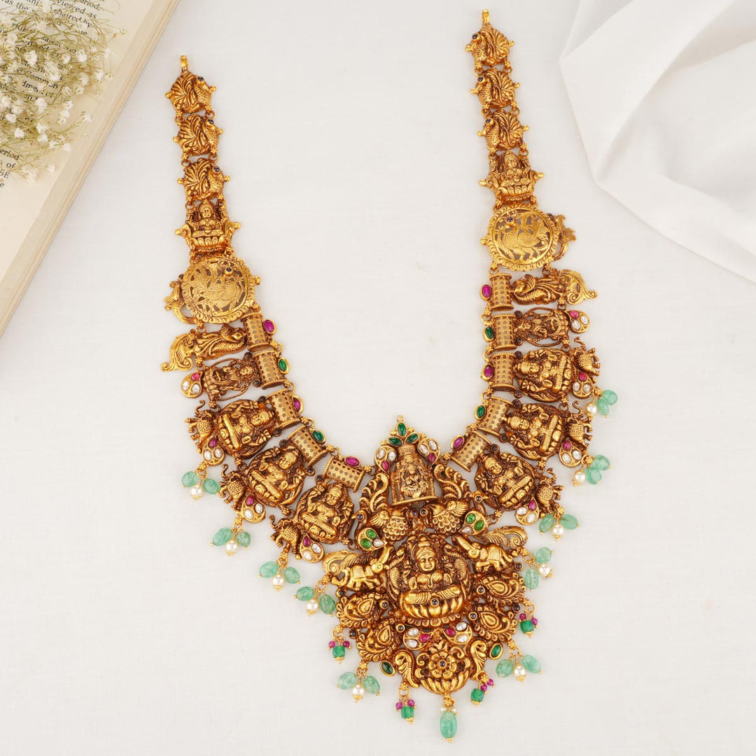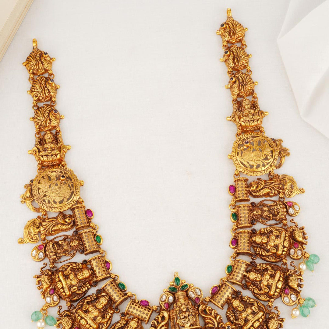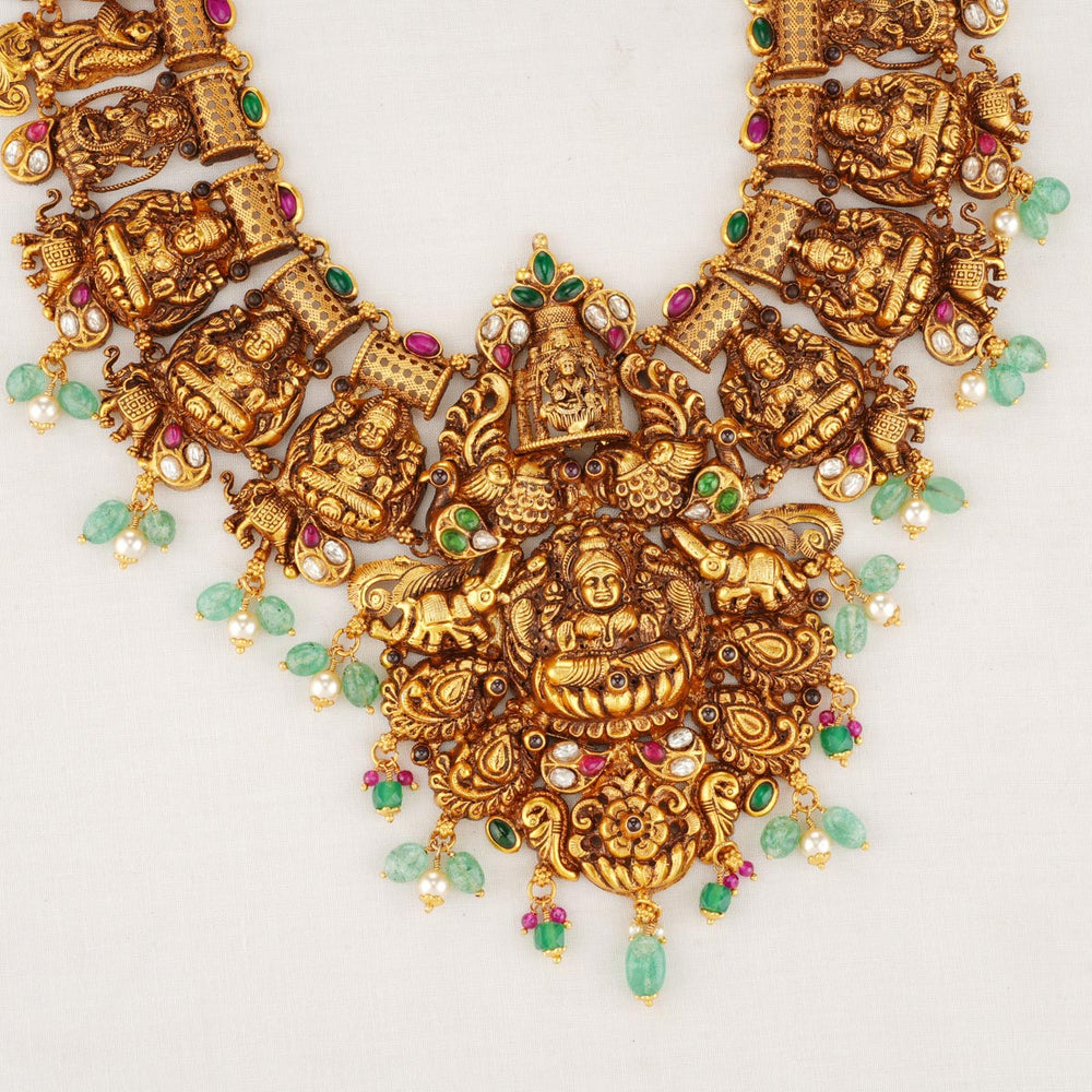 This necklace is made from 92.5 Sterling Silver, accented with semiprecious stones and adorned with a 24-karat gold plating, all on Nagas Jewellery.