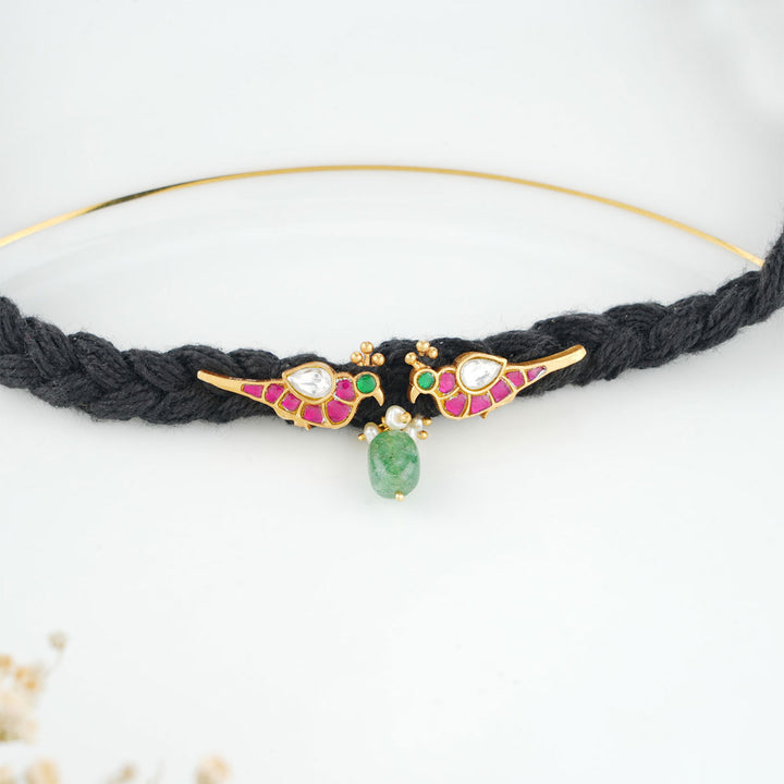 92.5 Silver, 22kt Gold Plated Kundan Rope Necklace Studded with semi-precious stones.