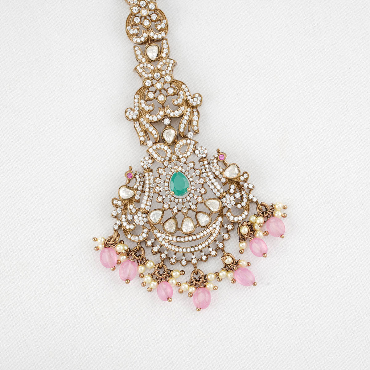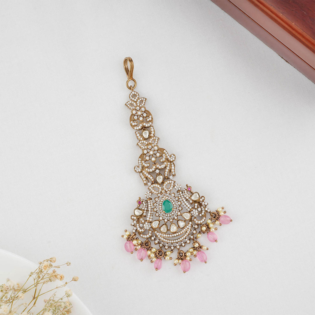 92.5 Silver, Victorian Maangtikka studded with Gem Stones and Pearls.