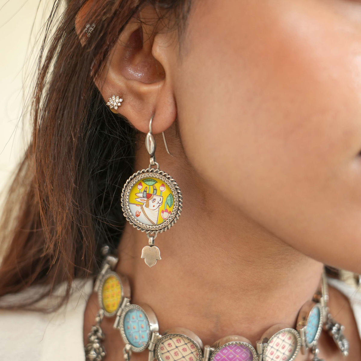 92.5 silver Pichwai Earrings,