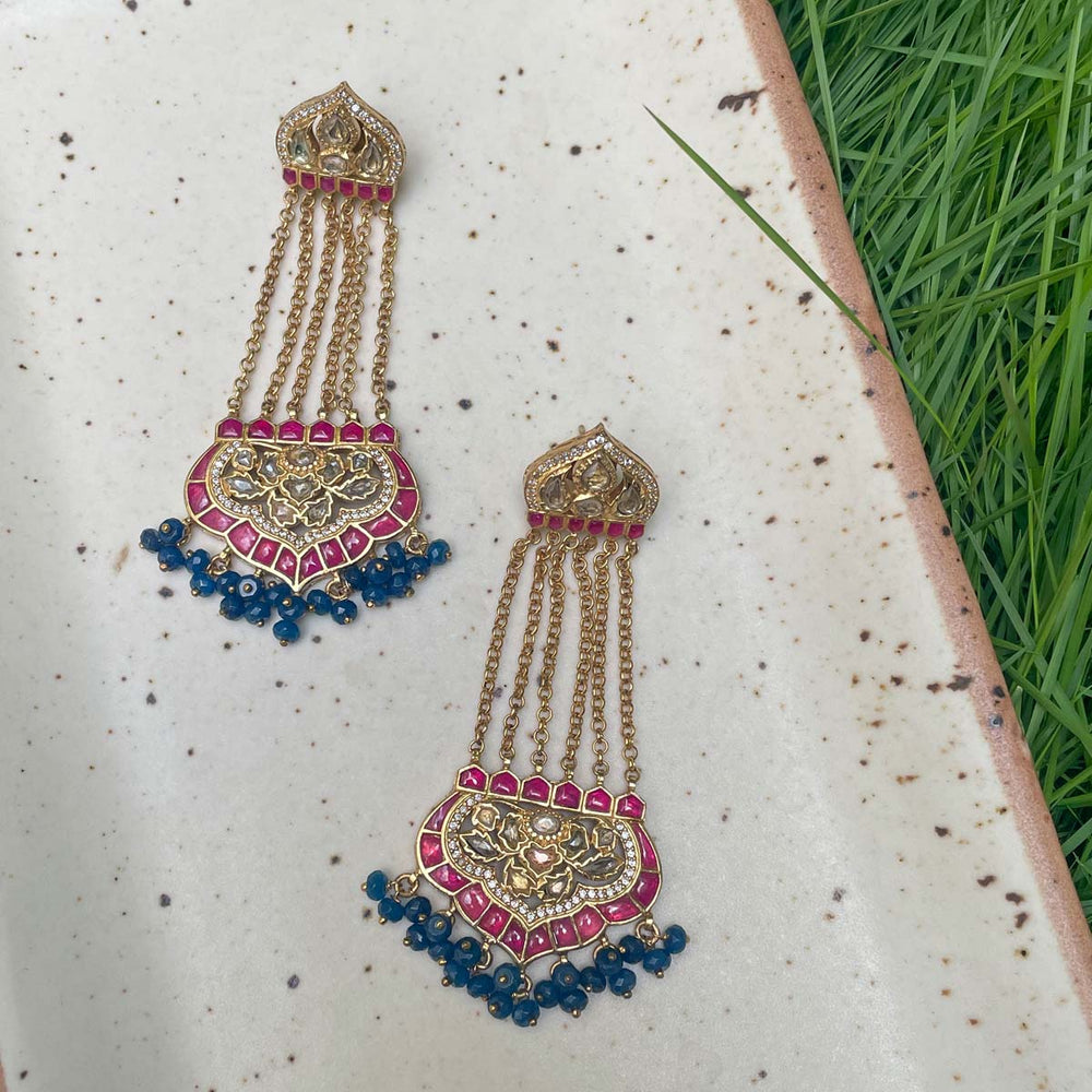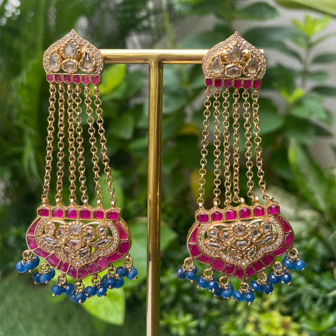 92.5 silver, 22kt gold plated Earrings studded with Semi-Precious stones.
