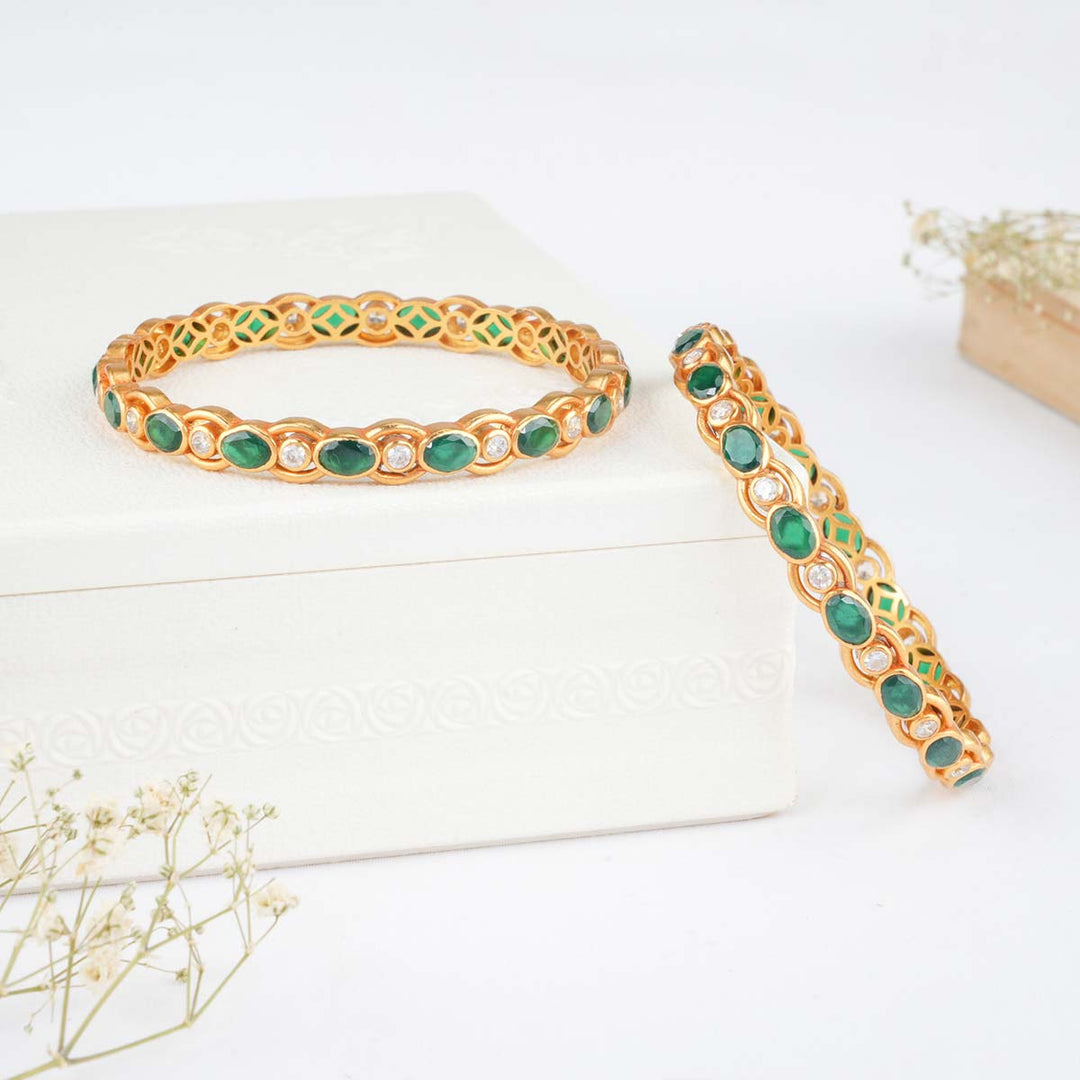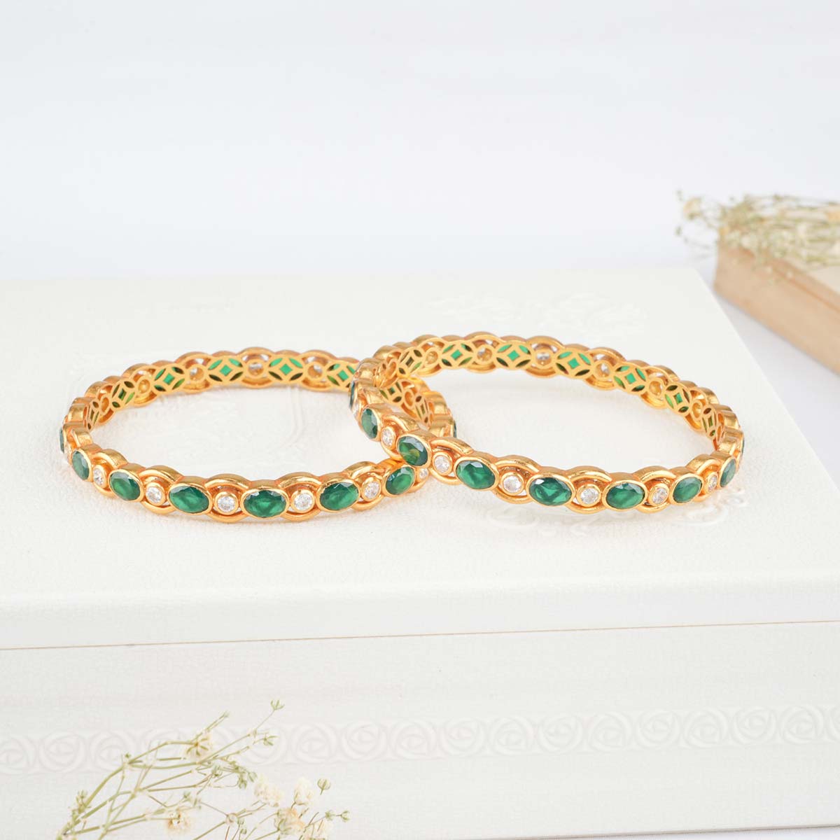 This 92.5 Silver, 24 kt gold-plated stylish Bangles is studded with semi-precious stones to make a stunning statement. Perfect for both formal and casual occasions.