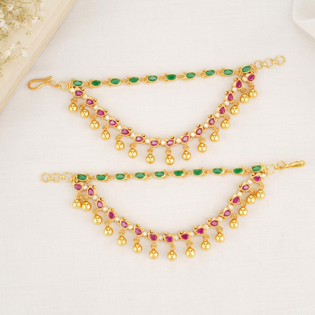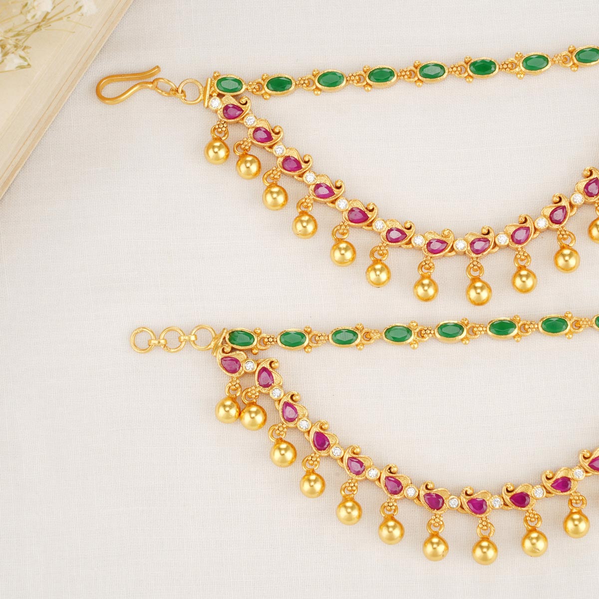 Crafted from 92.5 Sterling silver and 24kt gold-plated, Maatal is studded with semi-precious stones to create a stunning look.