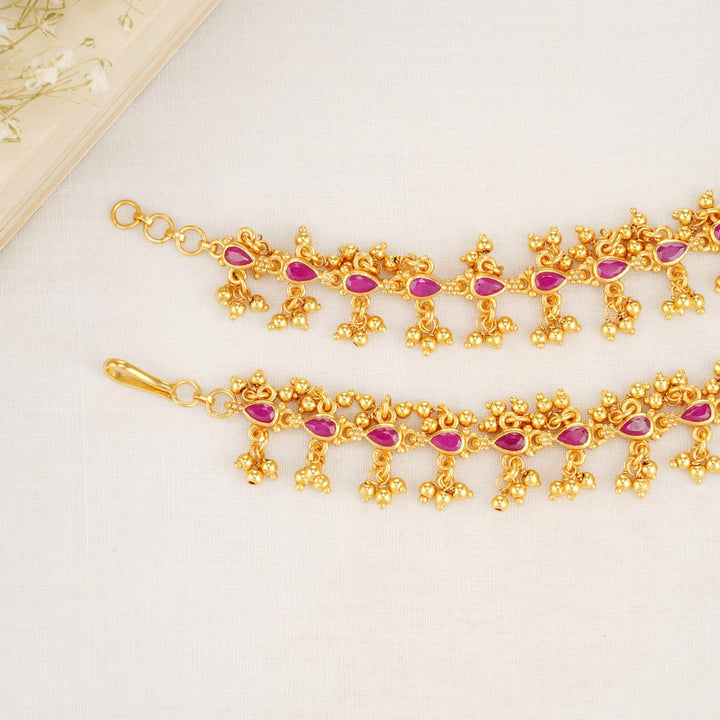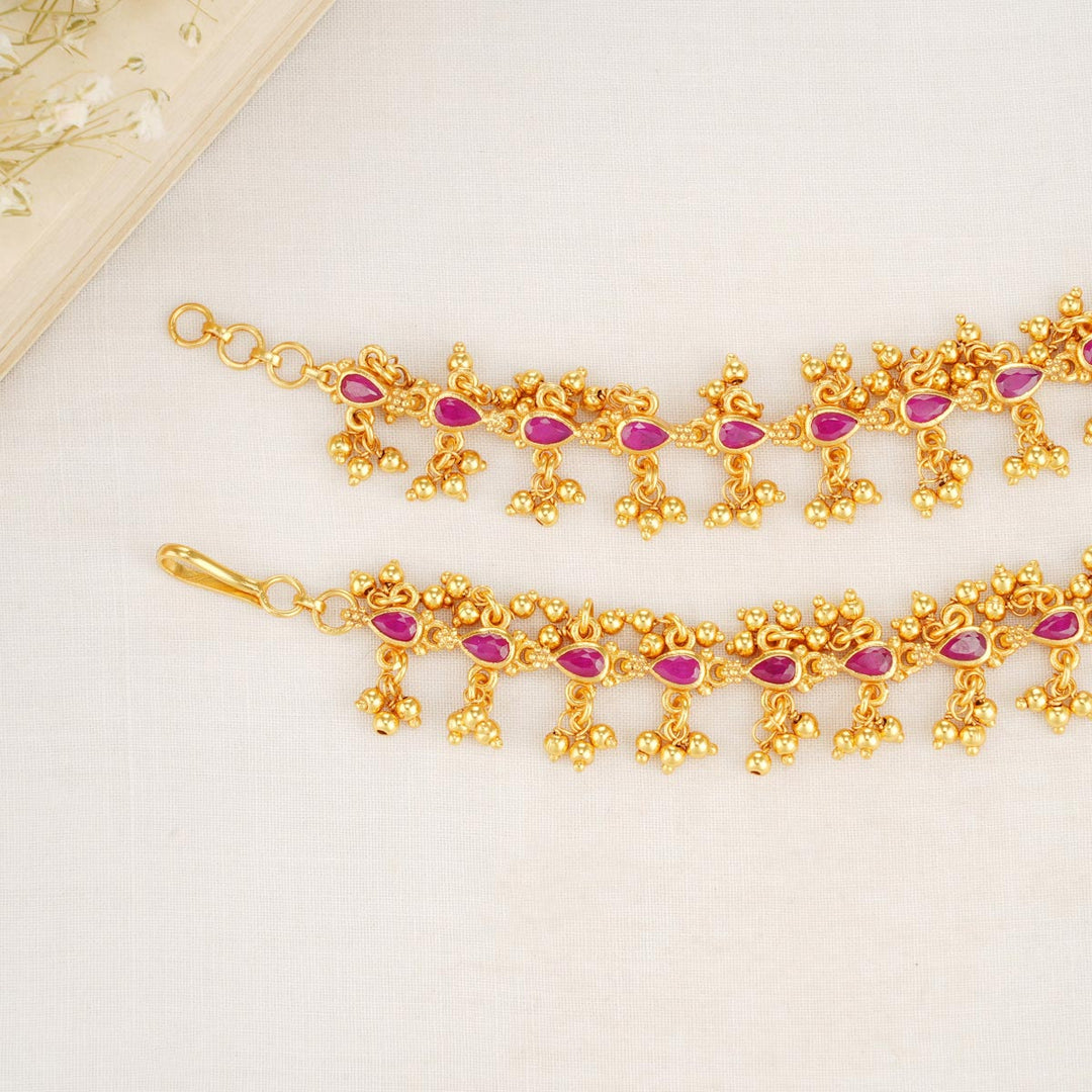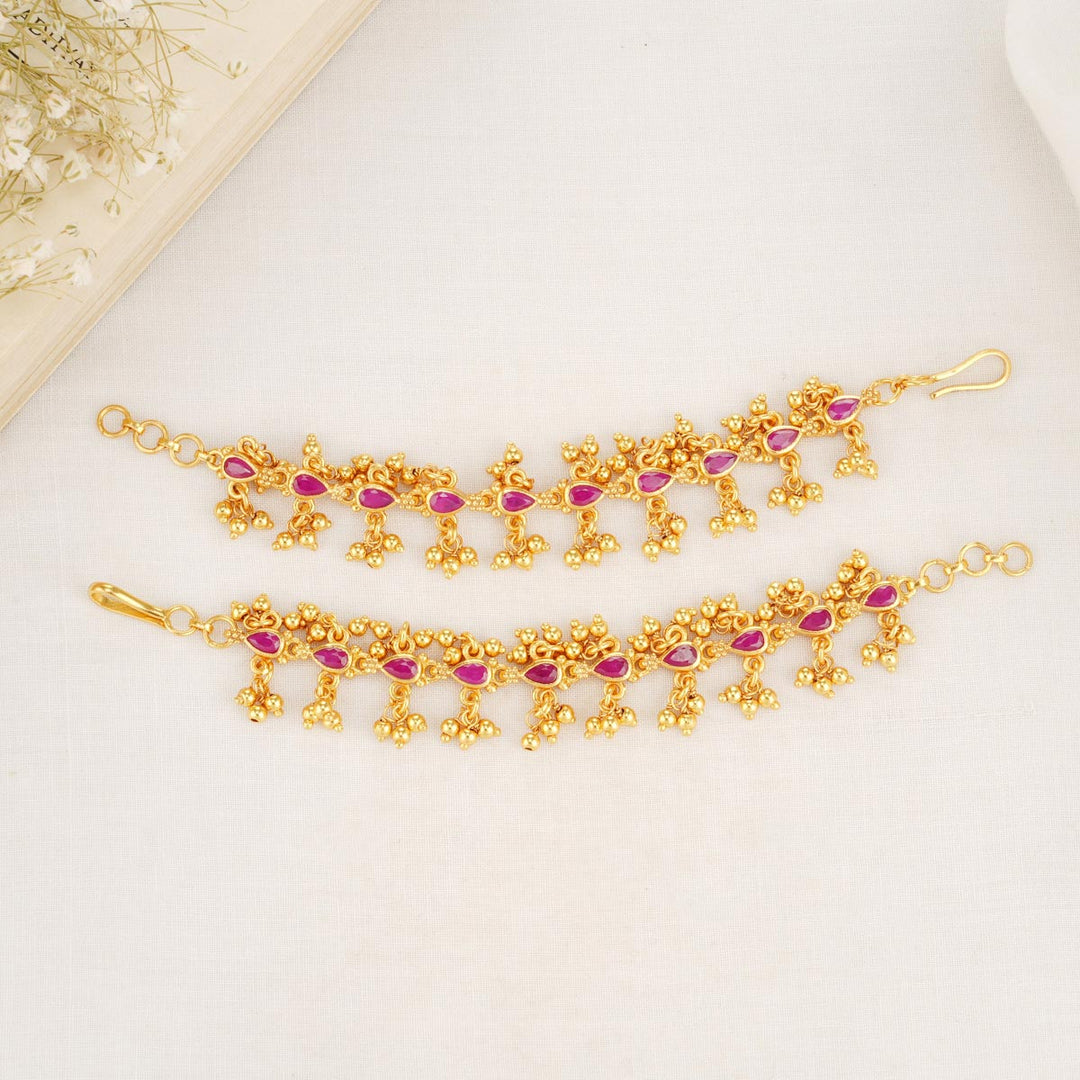Crafted from 92.5 Sterling silver and 24kt gold-plated, Maatal is studded with semi-precious stones to create a stunning look.