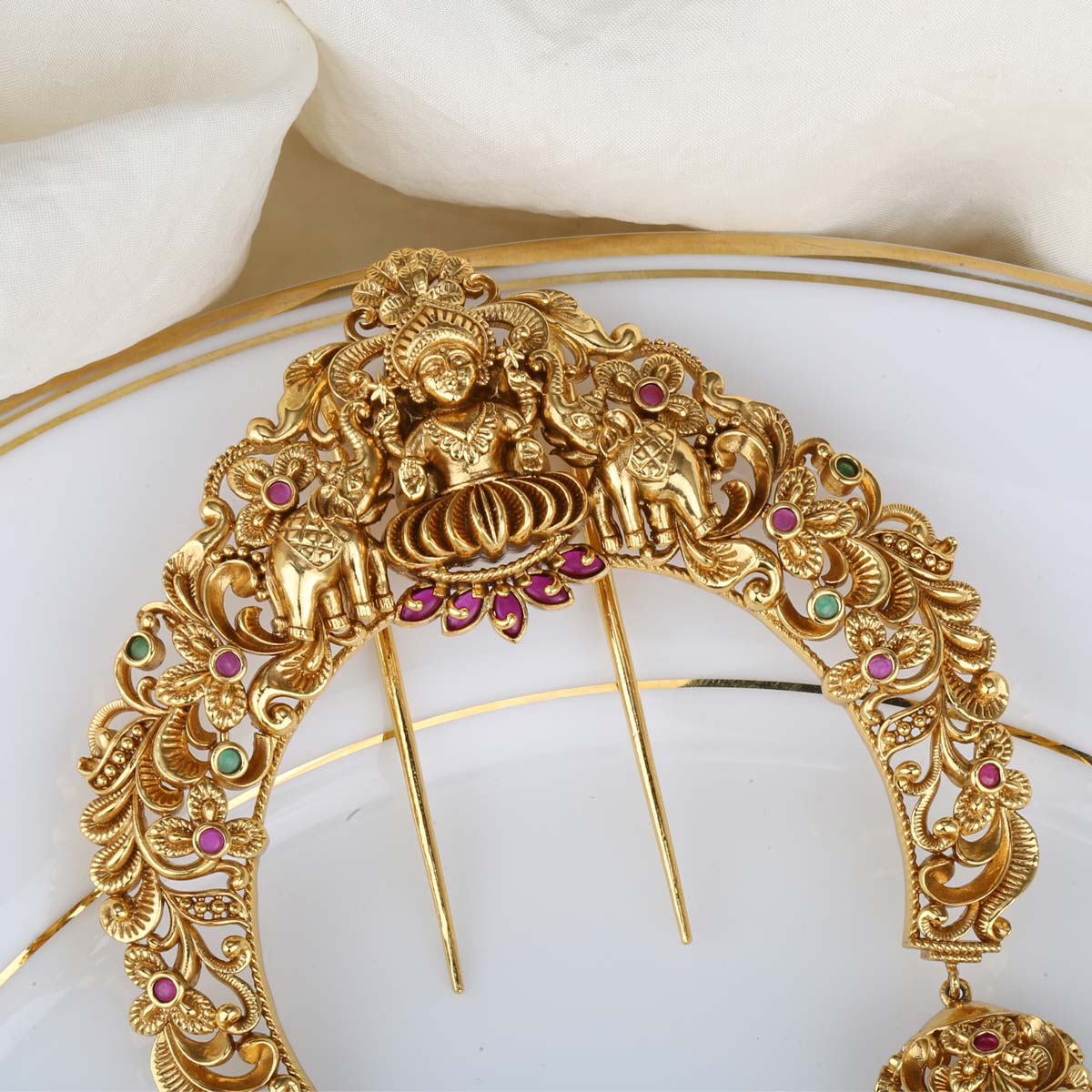 This Unique Jada Billa is crafted from 92.5% sterling silver and plated with 24Kt gold, featuring semi-precious stones set into the design.