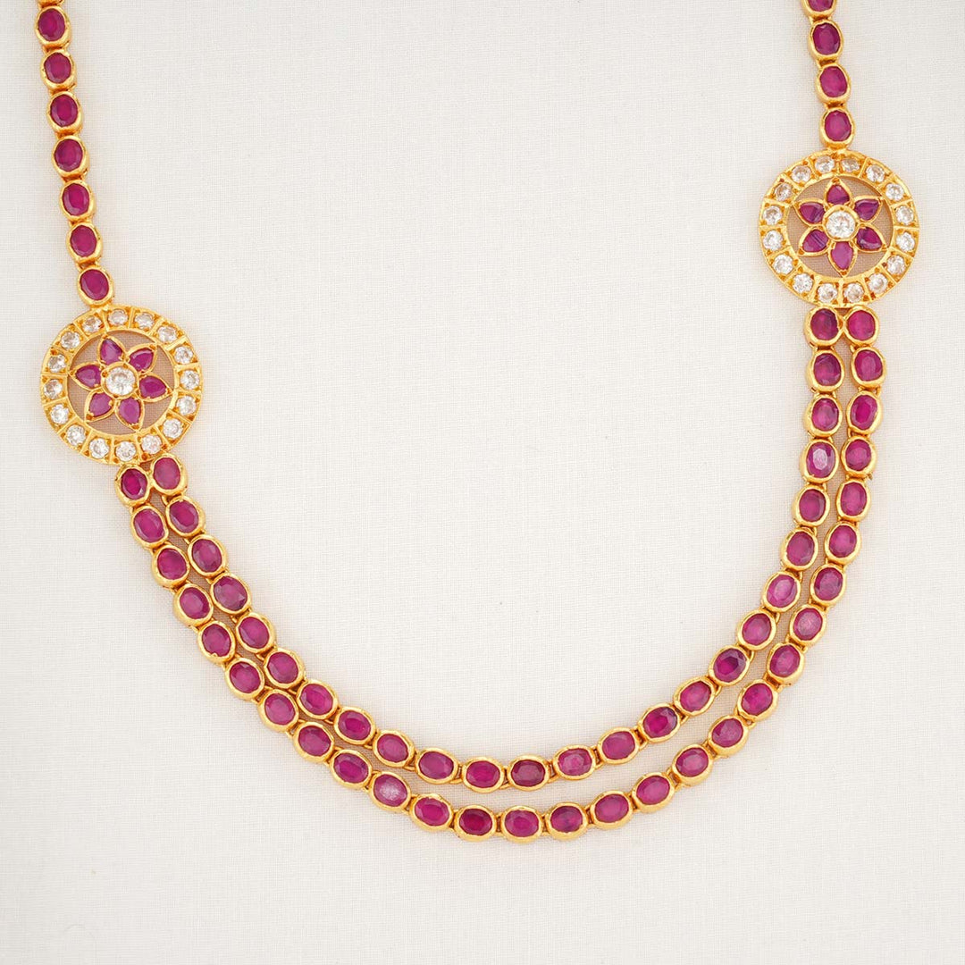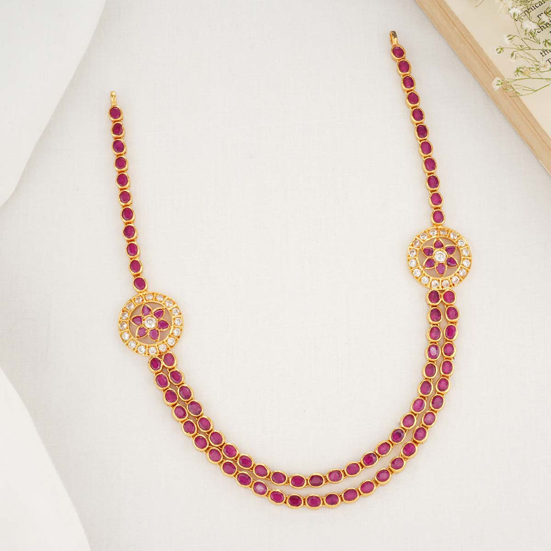 This necklace is crafted from 92.5 Sterling Silver and features 24-karat gold plating as well as semiprecious stones.