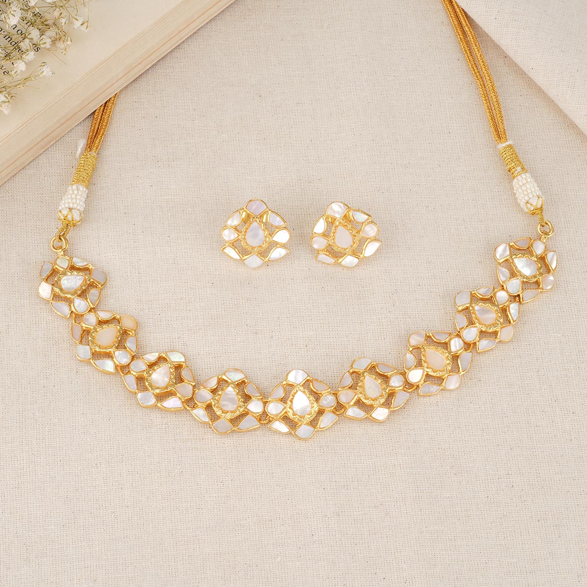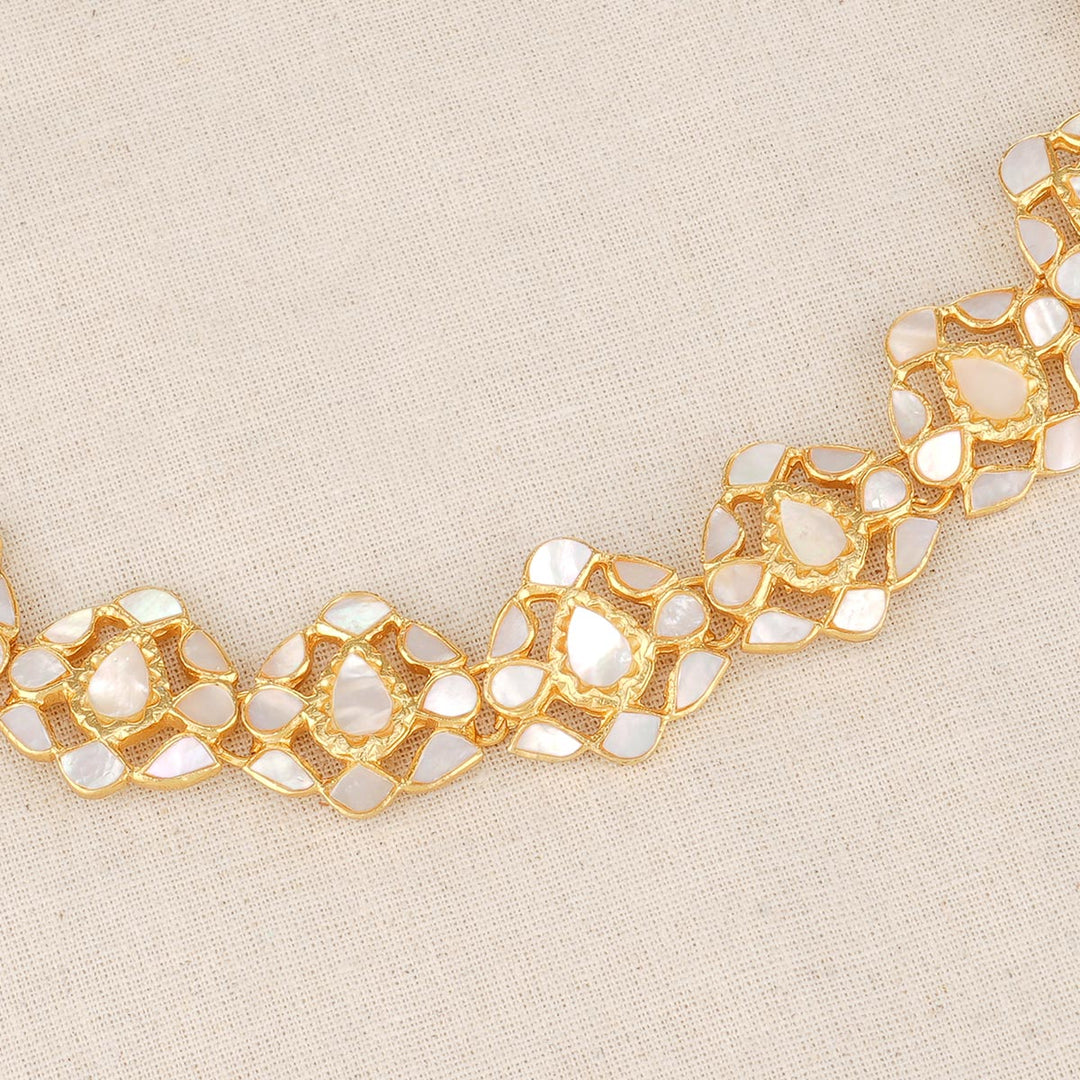 92.5 Silver,22kt Gold Plated Mother of Pearl Choker Set studded with Kundan Stones.