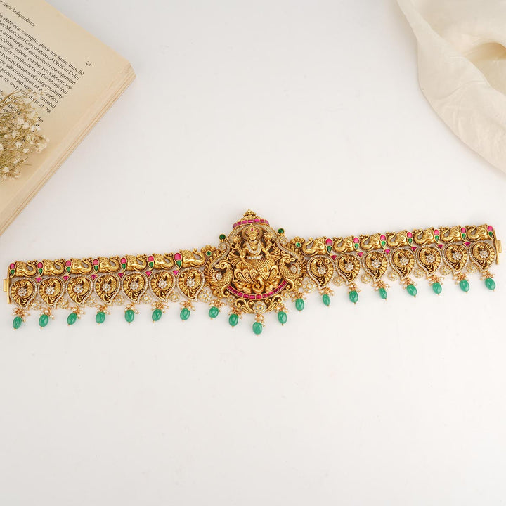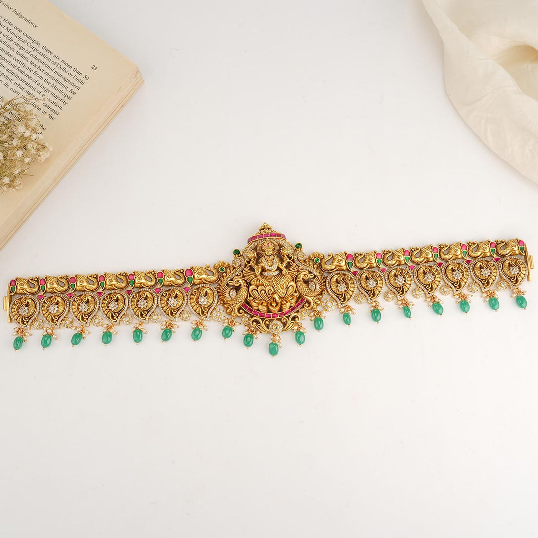 92.5 gold plated nagas oddiyanam/vadanam. this is studded with Semi-Precious stones that cast an auspicious blessing on the bride.