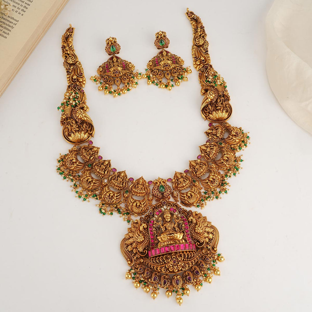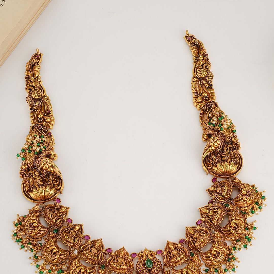Elevate your style with this Majestic Look Nagas necklace set. Crafted from 92.5 Silver and 24kt Gold Plated, this set boasts exquisite semi-precious stones for a dazzling effect.