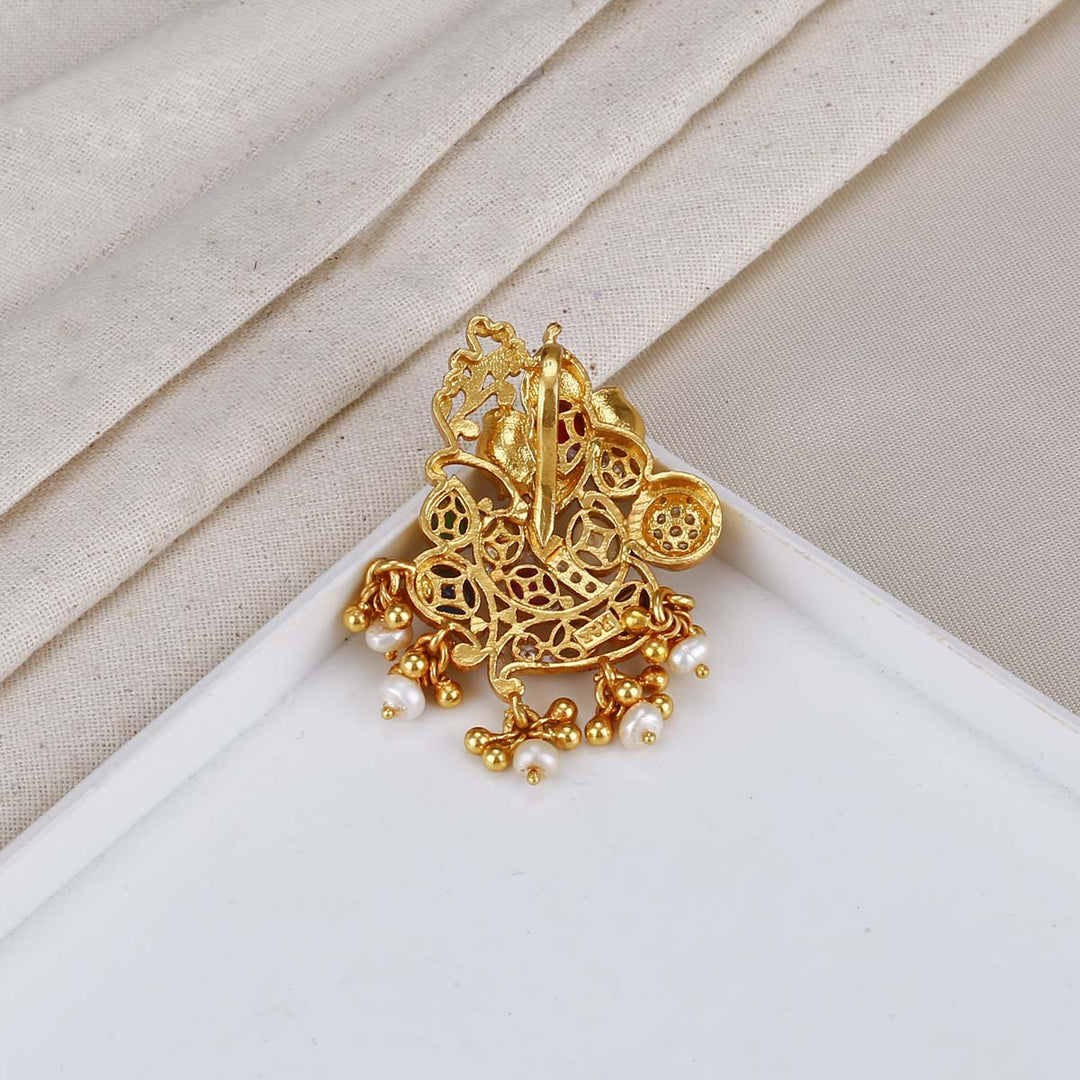 This 92.5 Silver, 24 kt gold-plated stylish Pendant is studded with semi-precious stones to make a stunning statement. Perfect for any special occasion.