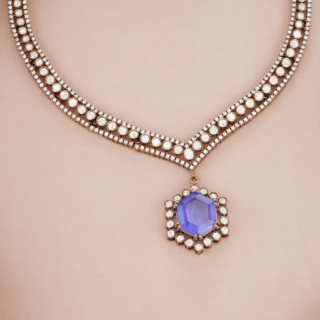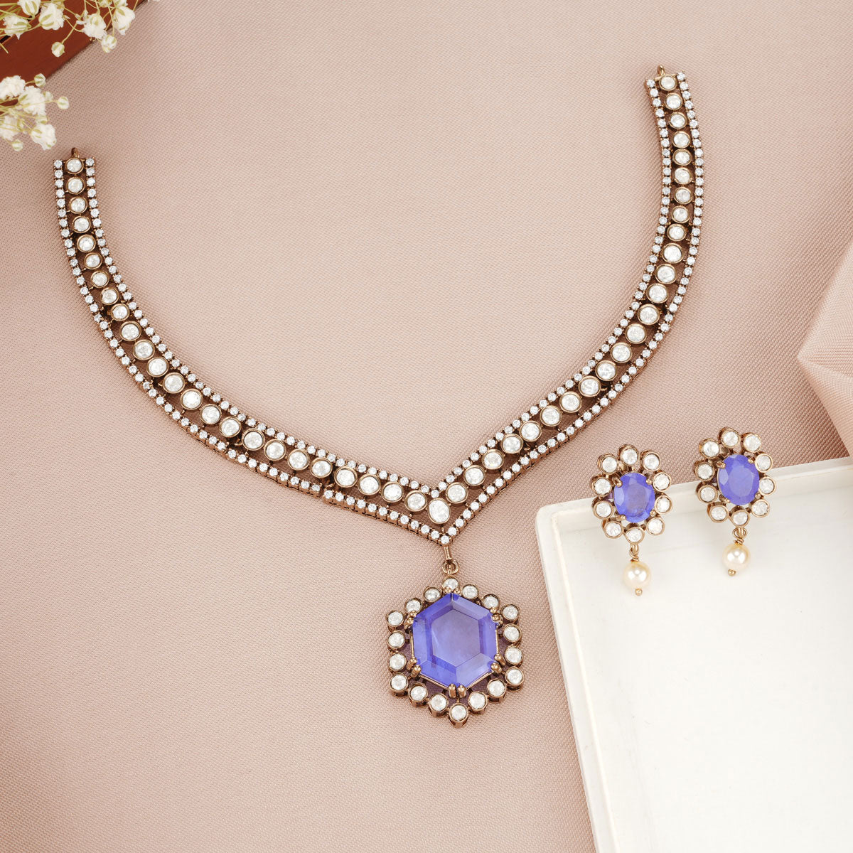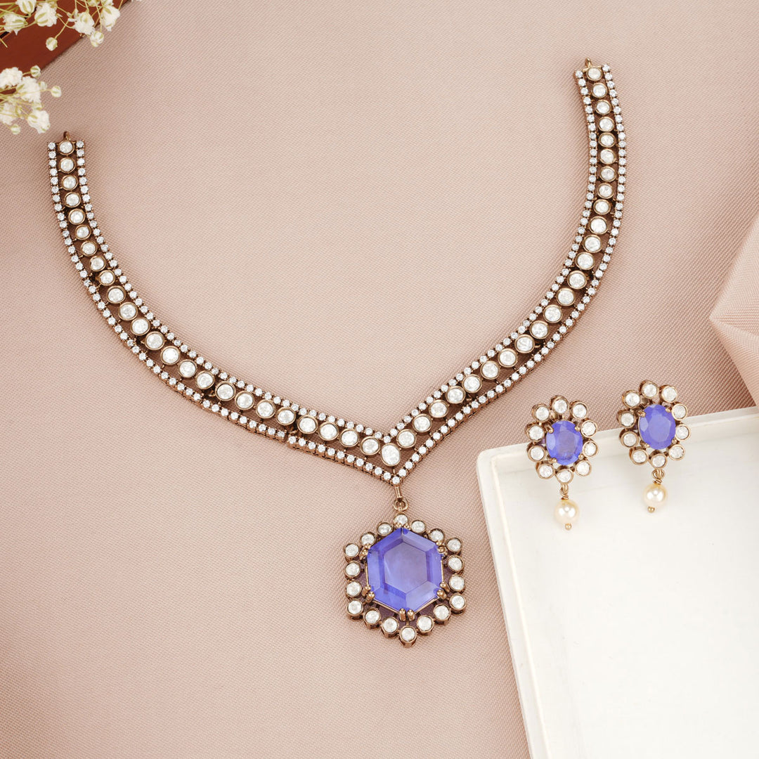 92.5 Silver, Victorian Necklace set studded with Gem Stones.