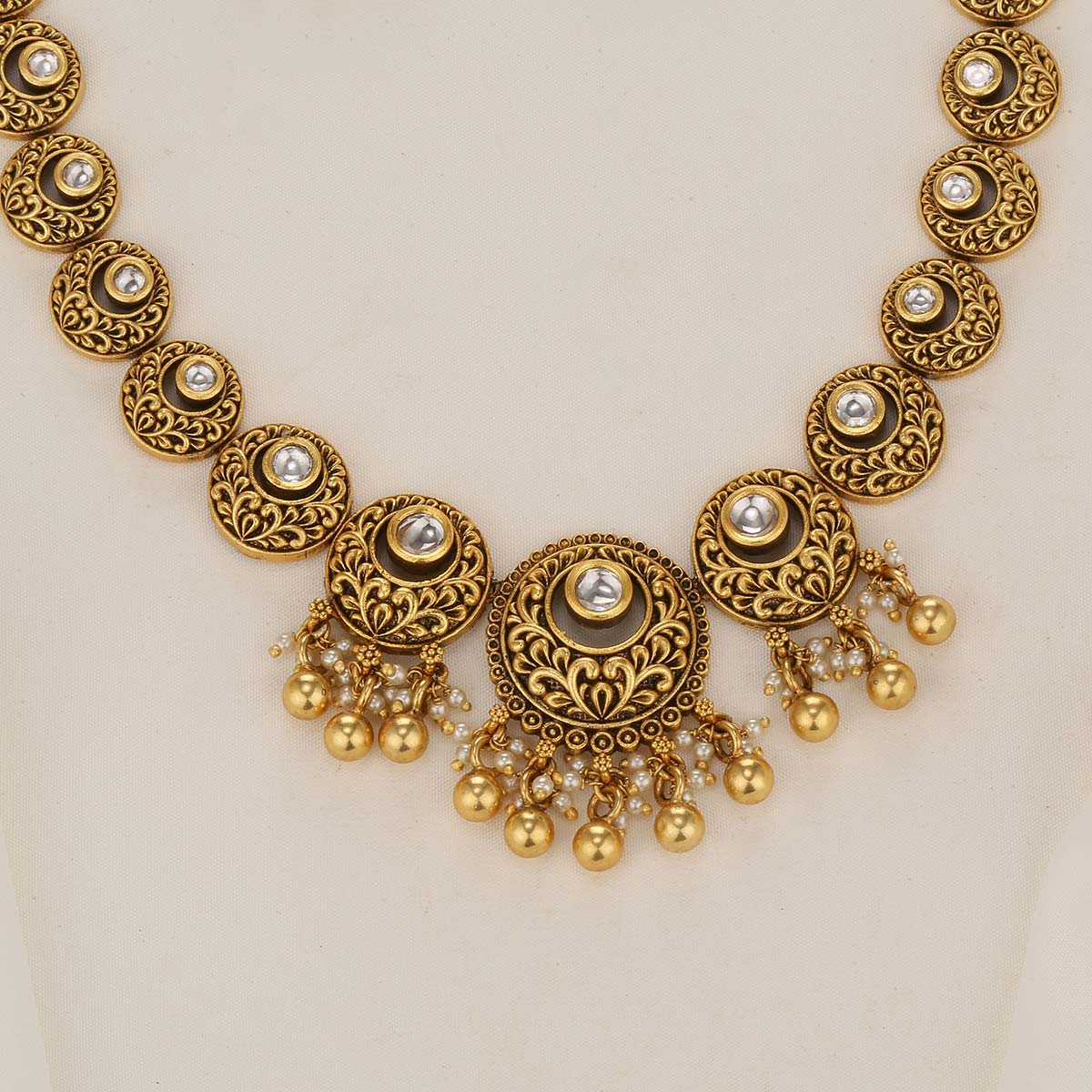 Crafted from 92.5 Silver and 24kt Gold Plated, this elegant Nagas Necklace Set features stunning semi-precious stones for a truly dazzling effect. Its unique design and exquisite style will undoubtedly make a grand impression.
