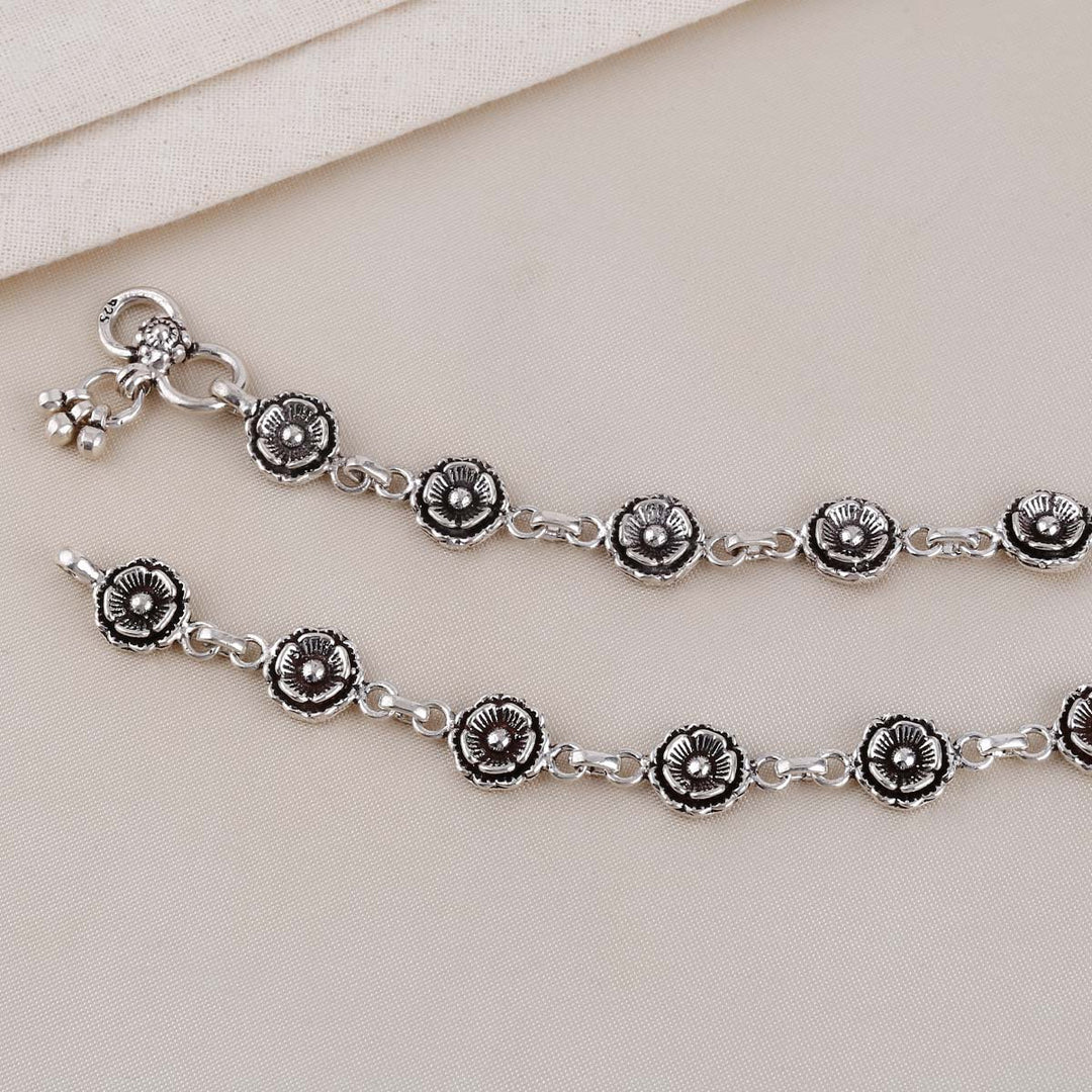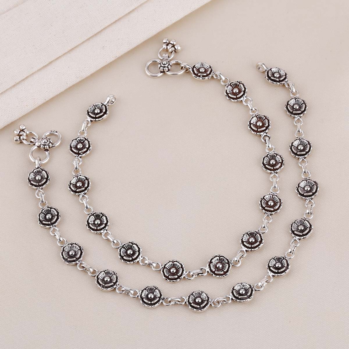 Let your feet grab all the attention with this pretty pair of anklets with Fancy designs all over. Handcrafted in Sterling Silver (92.5%) it makes it a great match with outfits of any color or design.