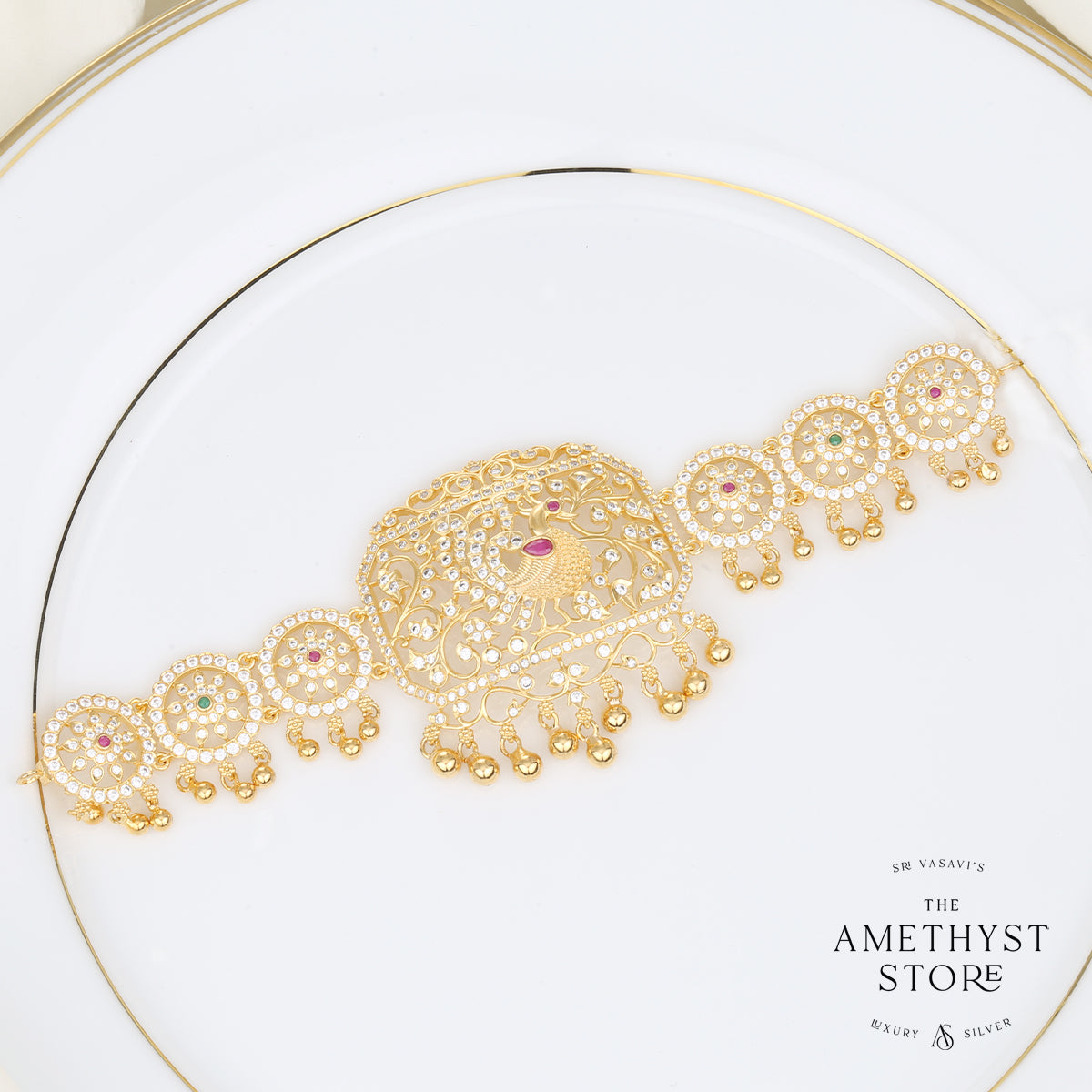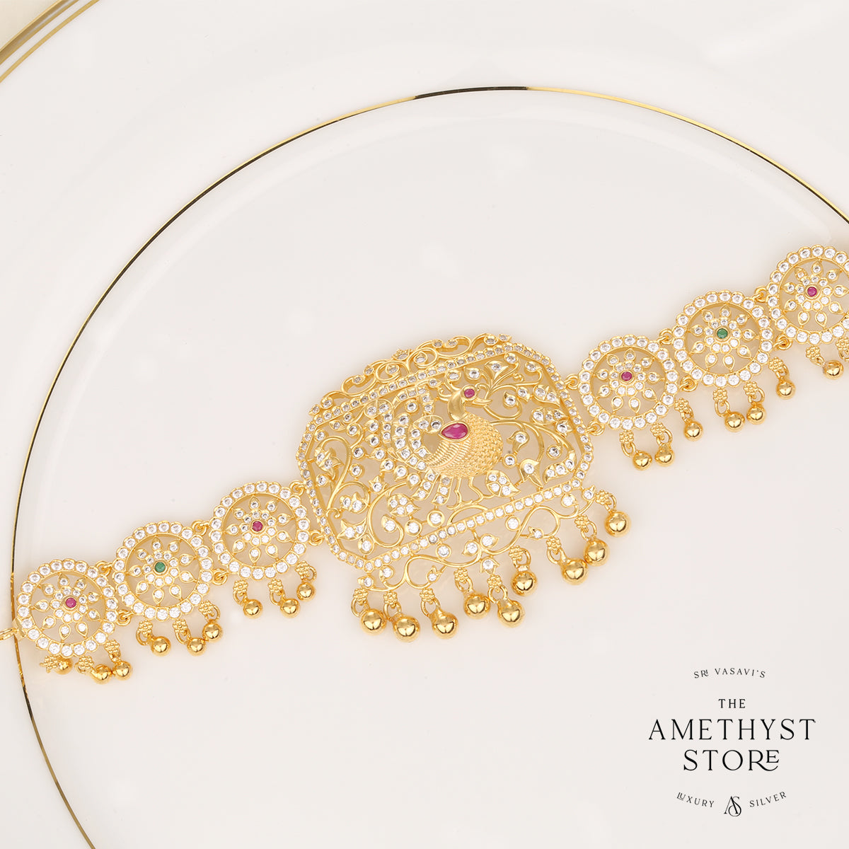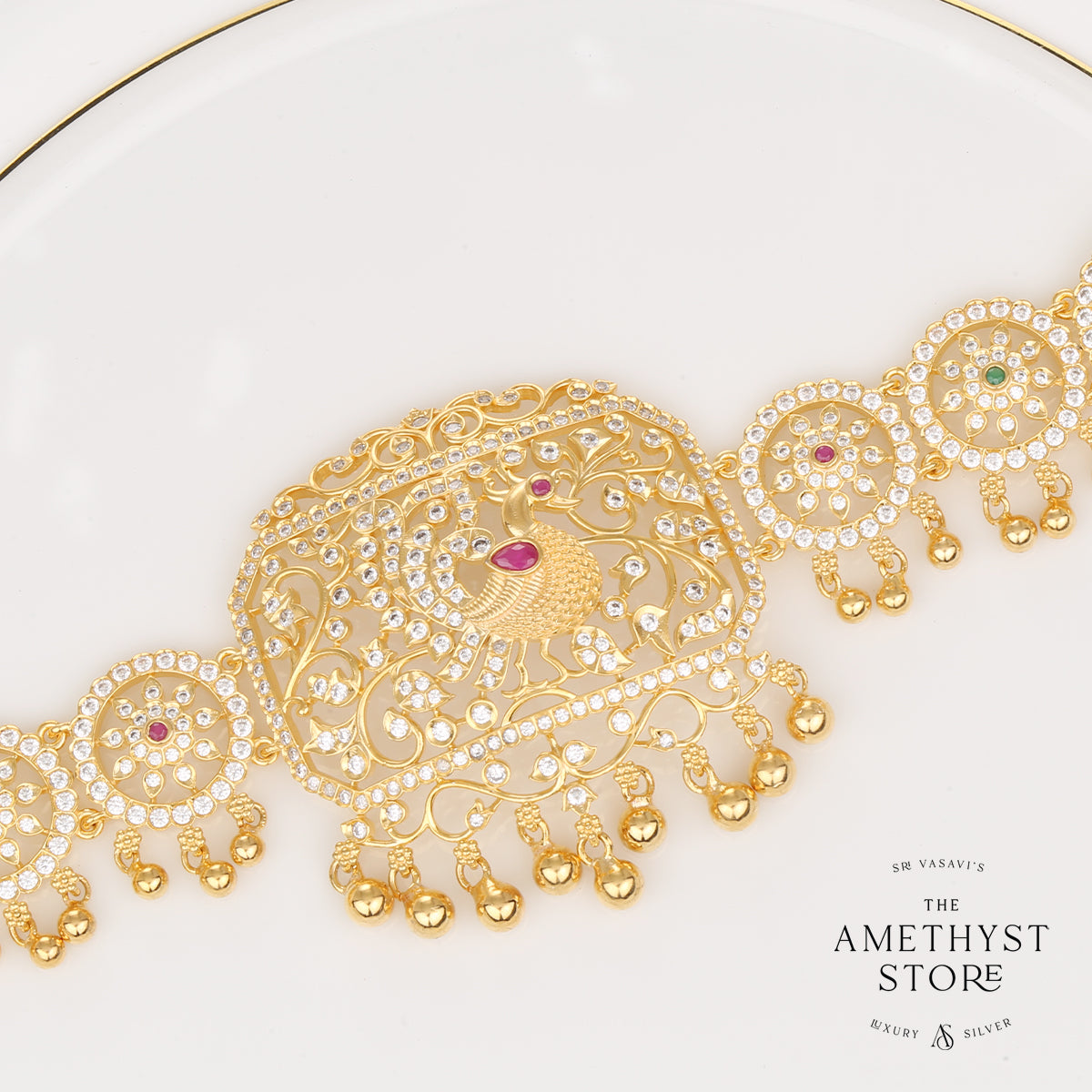 92.5 Silver, 22kt Gold Plated Necklace Studded with semi-precious stones.