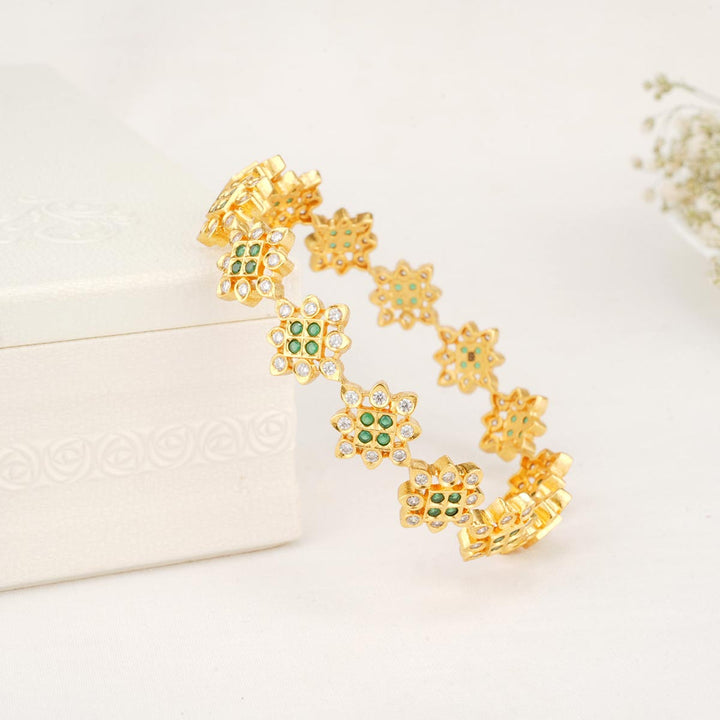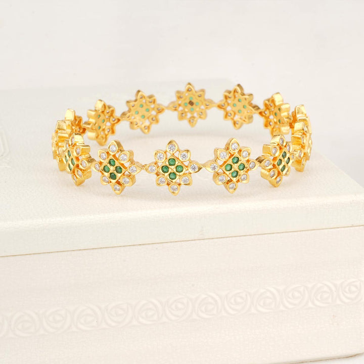 This 92.5 Silver, 24 kt gold-plated stylish Bangles is studded with semi-precious stones to make a stunning statement. Perfect for both formal and casual occasions.
