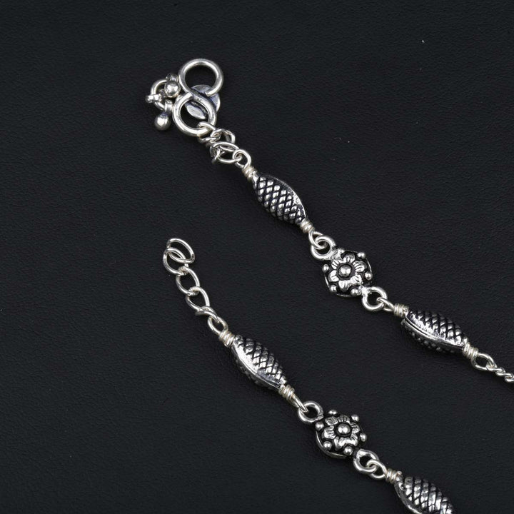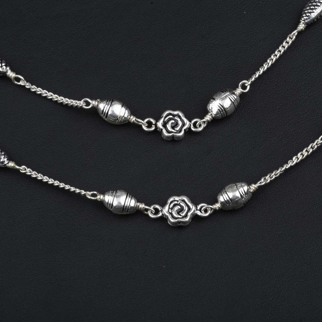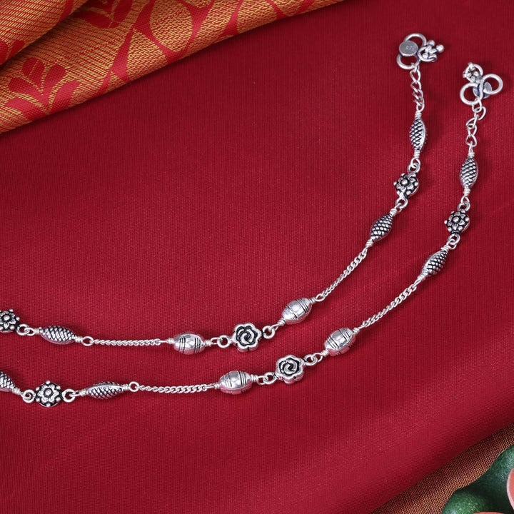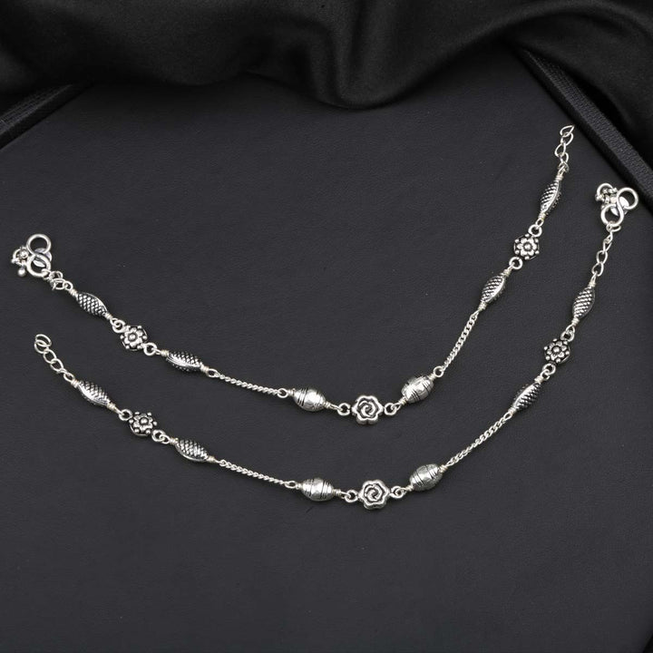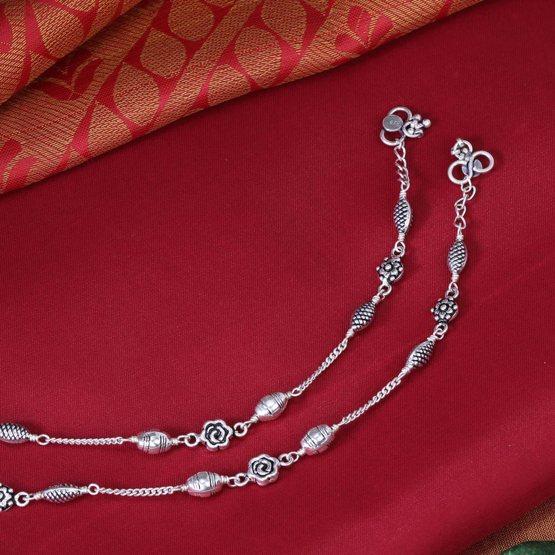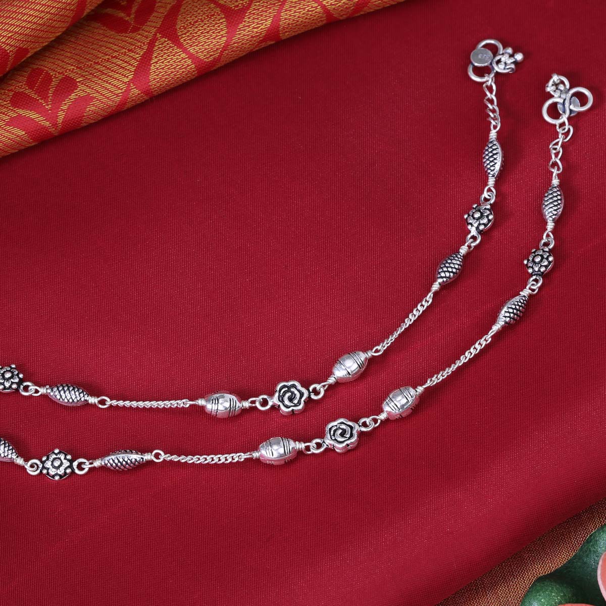 Let your feet grab all the attention with this pretty pair of anklets with Fancy designs all over. Handcrafted in Sterling Silver (92.5%) it makes it a great match with outfits of any color or design.