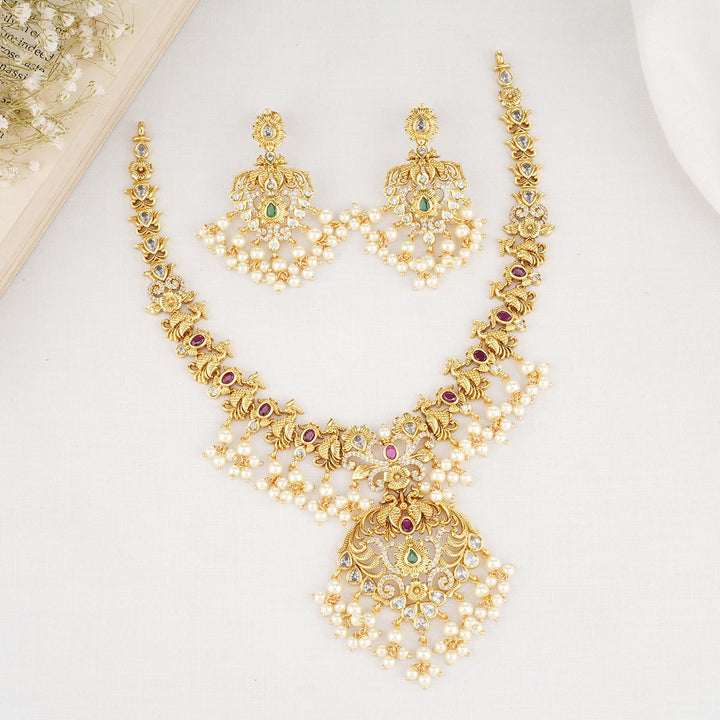 This set of Majestic Look Nagas necklaces is crafted from 92.5 Silver, 24kt Gold Plated, and is studded with semi-precious stones for a truly dazzling effect. Unparalleled in design and style, this exquisite set makes a grand statement.