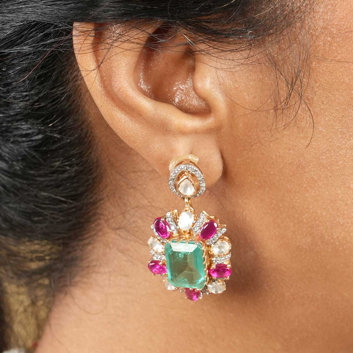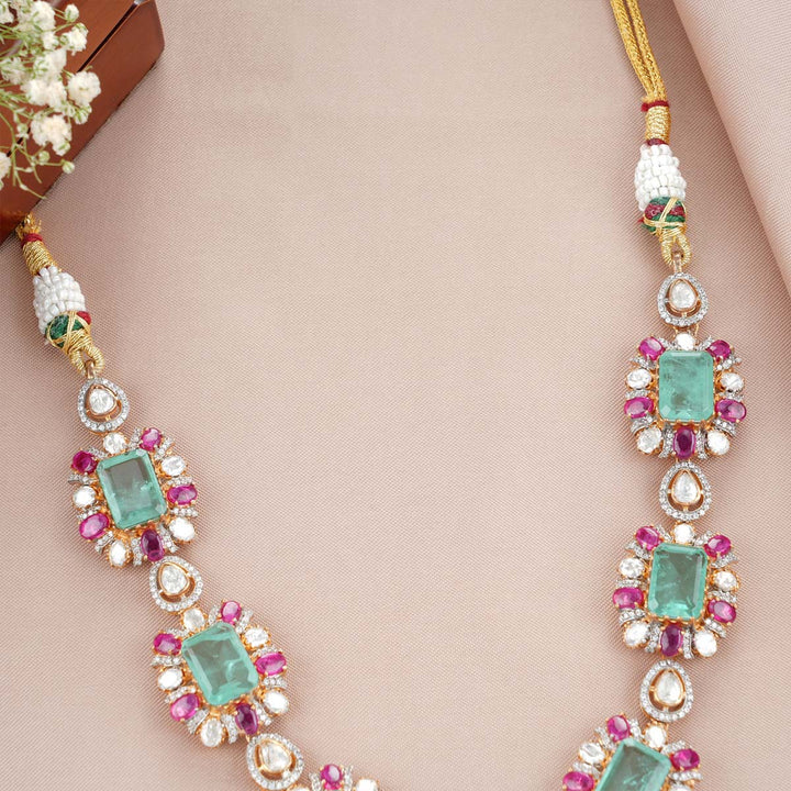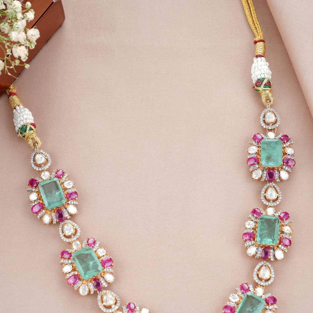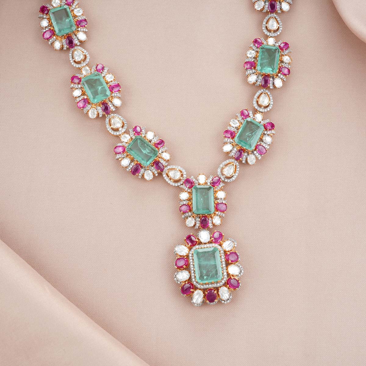 92.5 Silver, Victorian Necklace set studded with Gem Stones and Pearl Beads.