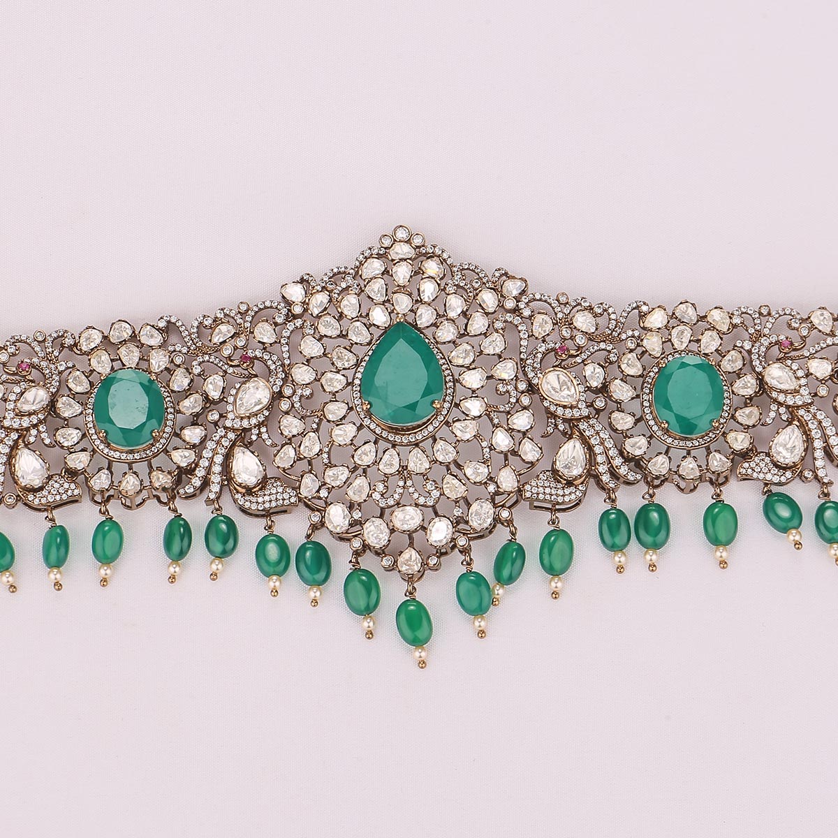 92.5 Silver, Victorian Oddiyanam studded with Gem Stones and Pearl Beads.